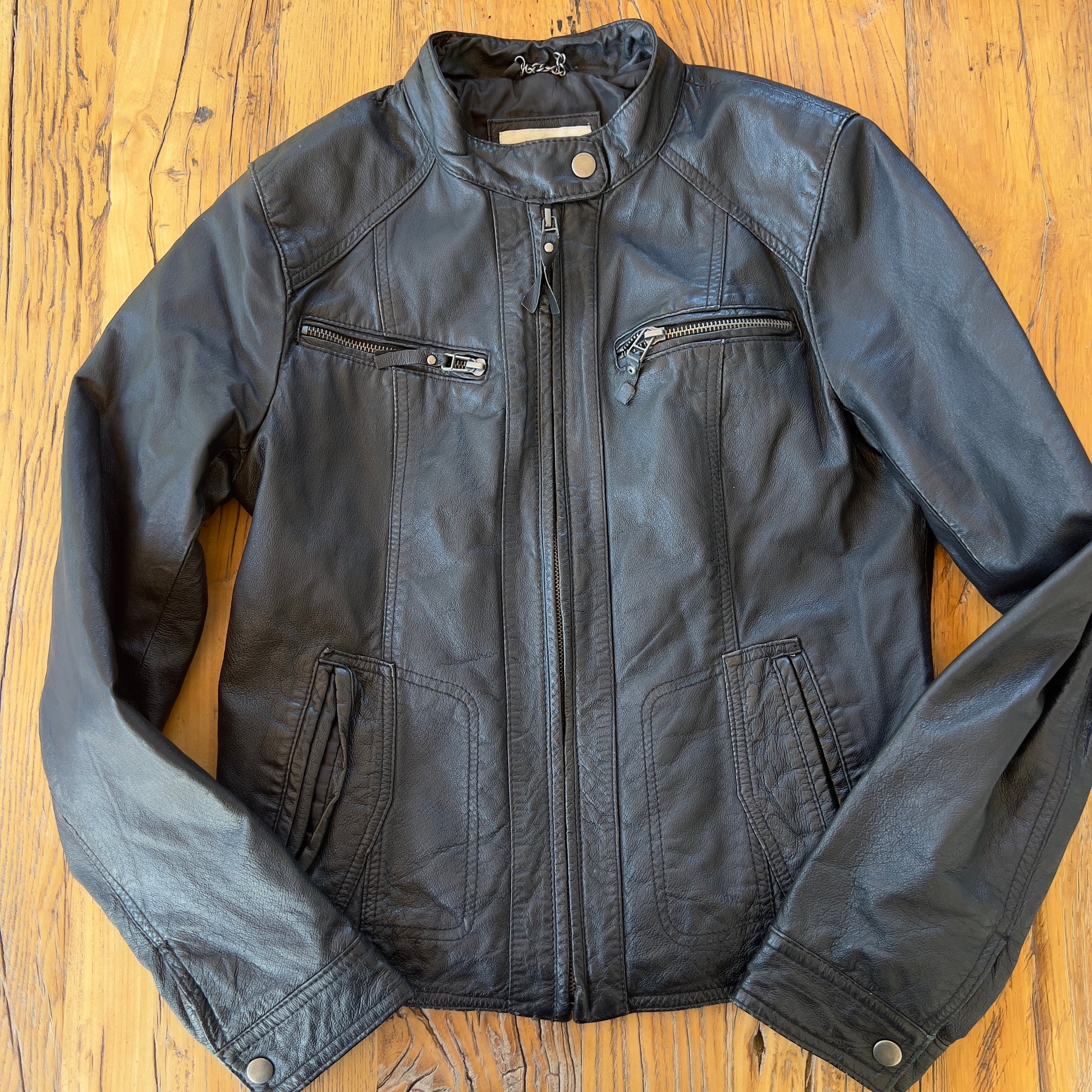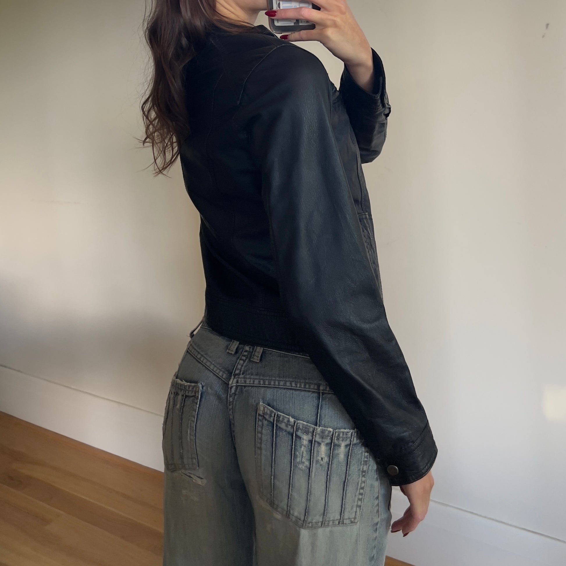 vintage black moto style leather jacket