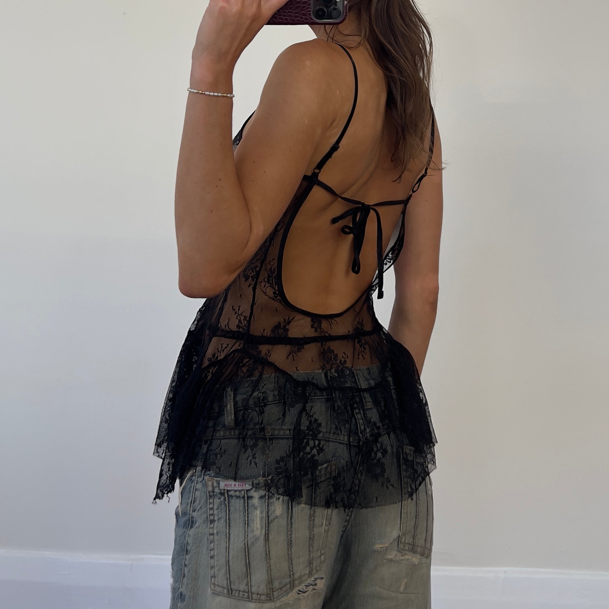 vintage black lace fairy cami
