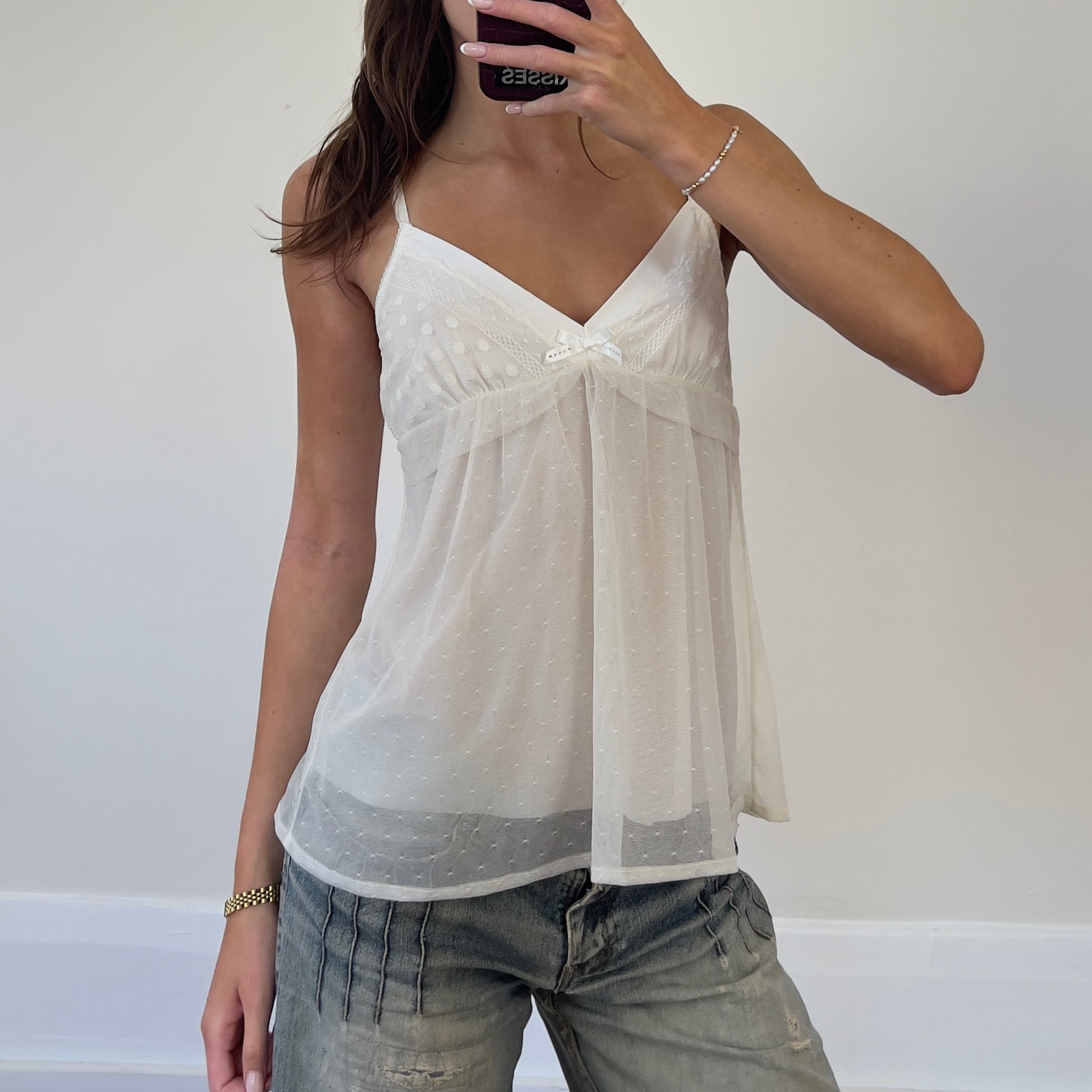 white mesh lace cami